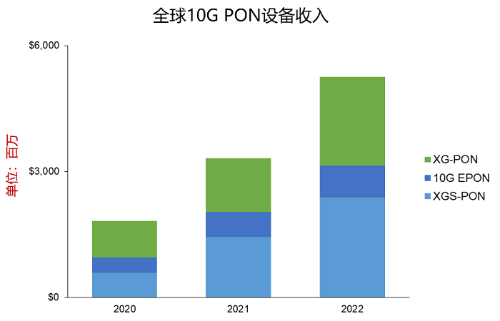 圖1:全球支持10Gbps的PON設(shè)備收入