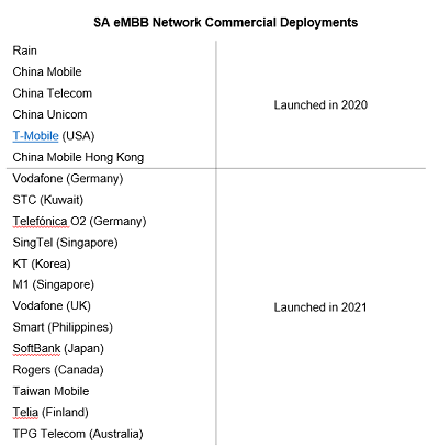 另一方面,2021年5G MCN市場(chǎng)比預(yù)期低10%,這是由于5G獨(dú)立(SA)網(wǎng)絡(luò)部署不及預(yù)期積極。Dell'Oro統(tǒng)計(jì)了2021年為增強(qiáng)型移動(dòng)寬帶(enhanced Mobile Broadband,eMBB)商業(yè)部署5G SA網(wǎng)絡(luò)的13家CSP,它們?cè)趶V度和深度上都遠(yuǎn)不及2020年或2021年中國(guó)服務(wù)提供商的建設(shè)。Dell'Oro原以為韓國(guó)三家CSP都已經(jīng)商用5G SA,但到目前為止,只有KT推出了服務(wù)。Dell'Oro還曾預(yù)計(jì)美國(guó)AT&T和Verizon,以及瑞士的CSP將在2021年推出5G SA。盡管如此,Dell'Oro估計(jì)2021年全球5G MCN市場(chǎng)的年增長(zhǎng)率將達(dá)61%,2022年增速預(yù)計(jì)將降至18%,主要由于對(duì)中國(guó)CSP的預(yù)期增長(zhǎng)率下降。