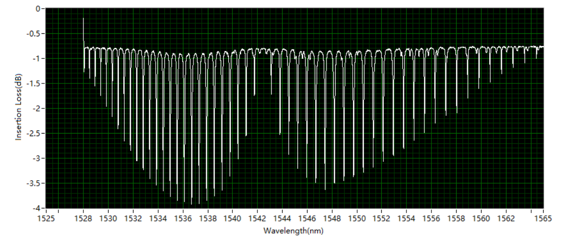 OCI-V測量HCN氣體吸收室,測得不同波長下的插損,波長精度可達(dá)1.6pm。
