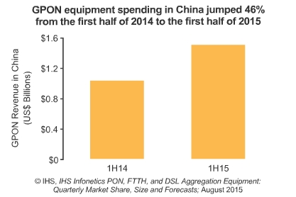 PON設(shè)備開支在2Q15實(shí)現(xiàn)了同環(huán)比增長(zhǎng),IHS預(yù)計(jì)2015年全球