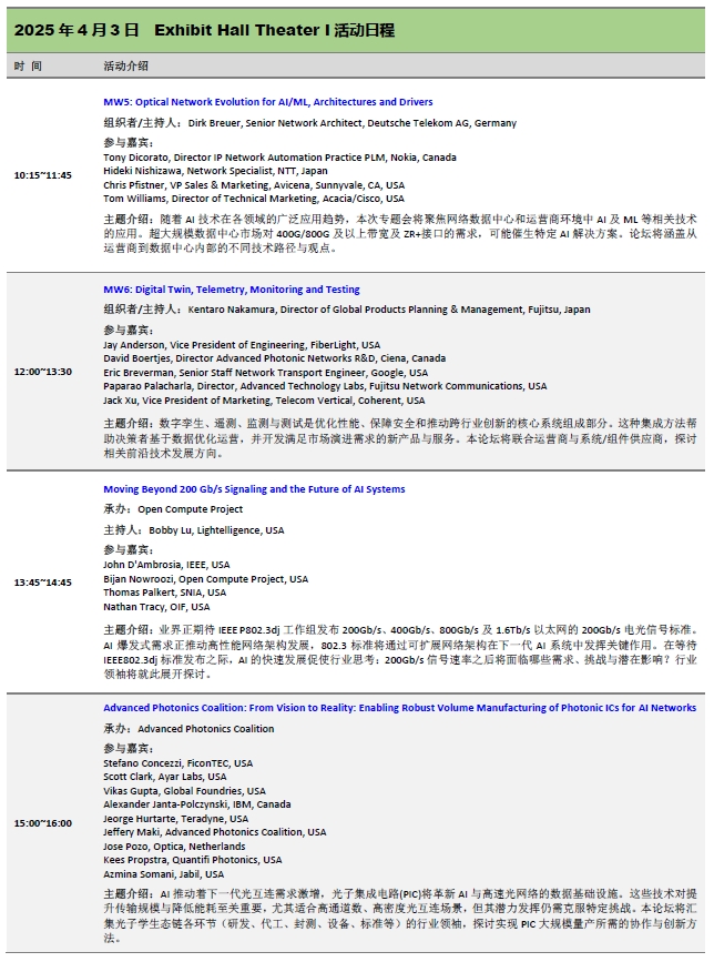 OFC2025展區(qū)活動:三天免費會議日程一覽