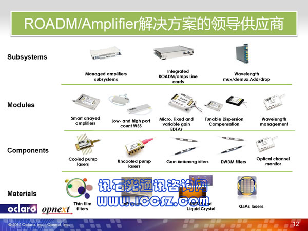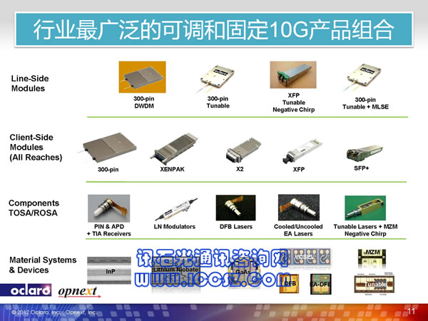 Oclaro與Opnext的合并將創(chuàng)造一家新的光器件和模塊市場領(lǐng)導(dǎo)者。預(yù)計到2015年,全球光器件和模塊市場將達到92億美元。合并帶來的廣泛產(chǎn)品組合、技術(shù)創(chuàng)新、工程資源、成本結(jié)構(gòu)和戰(zhàn)略客戶關(guān)系將擴大合并公司的經(jīng)濟增長機會,并未股東創(chuàng)造長期價值。憑借其在快速增長的40G和100G市場的領(lǐng)導(dǎo)地位,合并后的公司將成為核心光網(wǎng)絡(luò)市場頭號供應(yīng)商。