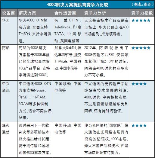 目前,包括華為、阿朗、中興和烽火通信在內(nèi)的廠商都推出了400G OTN解決方案,并且攜手多家運(yùn)營商進(jìn)行了實(shí)驗(yàn)室和驗(yàn)證測試,以驗(yàn)證和改善400G方案的性能。
