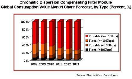 到2013年,應(yīng)用于10G和10G以下網(wǎng)絡(luò)傳輸系統(tǒng)的標(biāo)準(zhǔn)可調(diào)模塊將占整體市場(chǎng)的14%。在報(bào)告所預(yù)測(cè)的這段時(shí)間內(nèi),固定色散補(bǔ)償