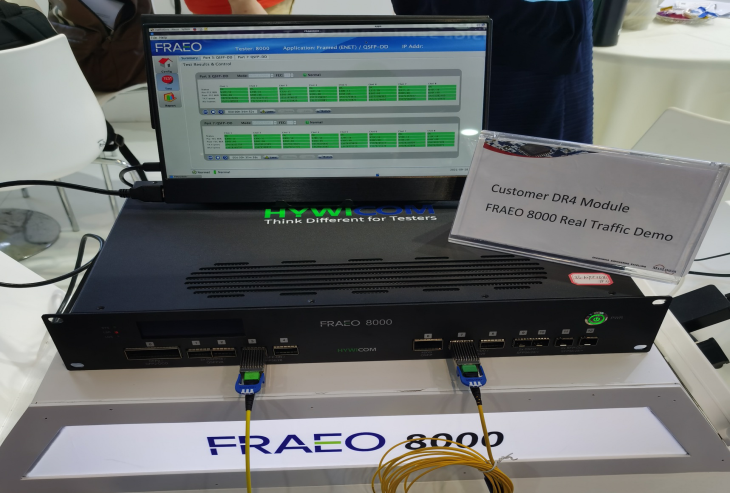然后是FRAEO 8000網(wǎng)絡(luò)測(cè)試儀測(cè)試基于最新芯片技術(shù)和制程的400G DR4光模塊的聯(lián)合演示;