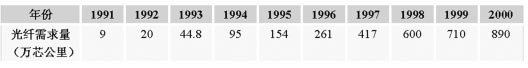 表一 上世紀(jì)后十年,我國(guó)對(duì)光纖需求變化