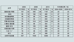 ElectroniCast預(yù)測(cè)全球基于光學(xué)集成電路(PIC)的混合型收發(fā)器市場(chǎng)銷(xiāo)售額將從去年的4.56億美元增長(zhǎng)到2009年的15.4億美元,到2014年將會(huì)進(jìn)一步增長(zhǎng)到53.9億美元,這里不包括分立電路收發(fā)器。這些收發(fā)器首先會(huì)在北美市場(chǎng)熱賣(mài),2009年,北美將占據(jù)全球市場(chǎng)的37%,預(yù)計(jì)到2014年將會(huì)進(jìn)一步擴(kuò)大到45%,而歐洲也將在09年占到總市場(chǎng)份額的37%。