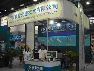 威誼光通技術(shù)有限公司以深藍色為主,整個展臺給人穩(wěn)重的感覺,展臺宣傳背頁也以公司主打的陶瓷插芯、跳線、連接器等產(chǎn)品為底,達到了很好的宣傳效果。而這次威誼也推出了新產(chǎn)品快速連接器,擺在了展臺最前沿的位置。