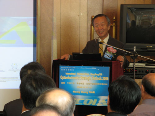 大會(huì)的第三天,我們驚喜地發(fā)現(xiàn)光纖之父高錕教授也出席了本次盛會(huì),并且作為特邀嘉賓在ICOIA的中國(guó)論壇開(kāi)幕式上作了基調(diào)演說(shuō)(Keynote),特別令人感動(dòng)的是高教授在演說(shuō)中對(duì)大陸的光通訊發(fā)展給予了高度評(píng)價(jià),并把中國(guó)大陸光通訊產(chǎn)業(yè)大力推介給國(guó)外業(yè)界的領(lǐng)袖們。