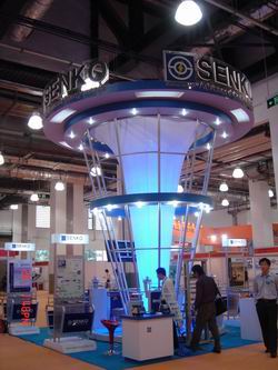 雖然照片拍攝有點(diǎn)模糊但上海這家光纖激光器廠(chǎng)家的產(chǎn)品展示還是清晰可見(jiàn),宣傳廣告和展臺(tái)都密密麻麻擺滿(mǎn)了激光器。