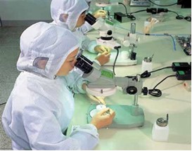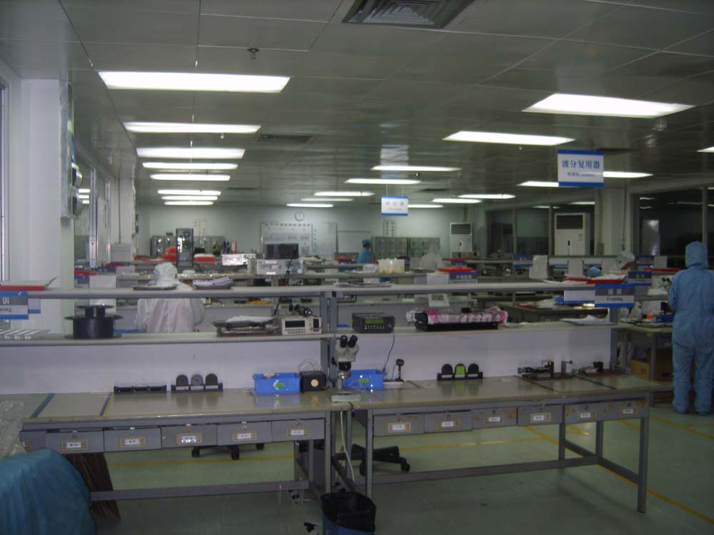| 在座談中,雖然已經(jīng)到了午休時間,我們還是跟隨楊總?cè)チ斯旧a(chǎn)線參觀。公司總體面積2300平方米,其中廠房2000平方米。在進入廠房后,我們發(fā)現(xiàn)有一個凈化生產(chǎn)間,據(jù)介紹這是一個擁有700平方米10000級的凈化生產(chǎn)車間(100級40平米),主要用來生產(chǎn)需要干凈生產(chǎn)環(huán)境的隔離器等產(chǎn)品。在廠房中,遠遠就看到廠房中間懸掛的產(chǎn)品牌子,這是每個具體產(chǎn)品具體的生產(chǎn)線。其中我們看到的有波分復用器(WDM)、密集波分復用器(DWDM)、光隔離器(Isolator)、單多模耦合器 (coupler)、光環(huán)形器(Circulator)、偏振光合束器(PBC)、單/雙纖準直器(Collimator)、 固定衰減器(Attenuator)等等。據(jù)楊總介紹目前公司生產(chǎn)的無源器件產(chǎn)品類型比較齊全,從簡單到復雜的都有,尤其是所有保偏系列器件及各類活動連接器和各種跳線產(chǎn)品都能做。“滿足客戶需求是我們的服務理念”楊總說。公司不僅在器件種類齊全方面具有優(yōu)勢,而且在客戶服務方面也有一套快速反應系統(tǒng),力求在兩天里發(fā)貨的規(guī)定,同時對于大客戶公司都會為其準備一定的庫存,保證存貨充足,按時發(fā)貨。公司在研發(fā)技術方面也具有優(yōu)勢,因為公司與美國先進的光纖通訊研發(fā)機構(gòu)進行合作,對方有最先進的設備儀器,( AC Photonics Inc.和Agiltron Inc.) 可根據(jù)市場的需要研制最新最有競爭力的產(chǎn)品。 | |||