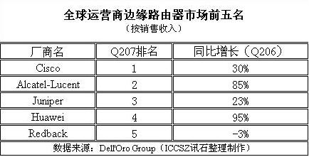 報告內(nèi)容,思科仍穩(wěn)坐其全球邊緣路由器市場第一大廠商的座椅,阿爾卡特朗訊則趕超Juniper位居第二,華為也超越了Redback名列第四。