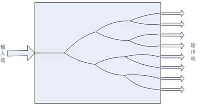 光分離器現(xiàn)有4分歧與8分歧兩種,它由石英平面光波回路制成,一個(gè)輸入口可有4個(gè)或8個(gè)輸出口,兩端通過(guò)樹(shù)脂紫外線固化方式與光纖相連,這樣在B/GE-PON系統(tǒng)中可以實(shí)現(xiàn)一臺(tái)局內(nèi)設(shè)備和最多32個(gè)用戶相連(通過(guò)兩個(gè)分處于局內(nèi)和用戶側(cè)的光分離器串連可以實(shí)現(xiàn))。