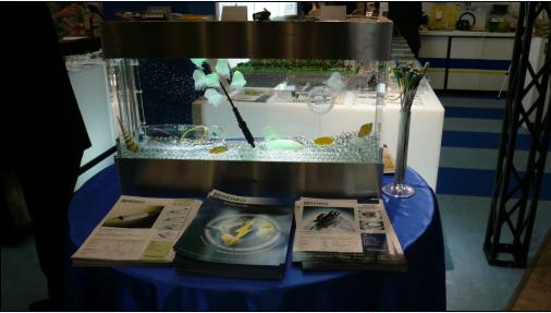 Senko布展沒有像在中國參展那樣氣勢恢弘,在本次FOE上卻在細節(jié)和創(chuàng)新上下足了功夫,可以數(shù)得上全場最有特色的展臺了?,F(xiàn)場除了用模擬展示FTTH系統(tǒng),連魚缸也搬上了展臺,為的是展示其防水性能優(yōu)越的新型連接器。