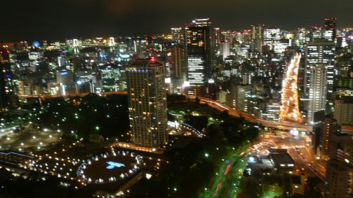 為了站得更高看得更遠(yuǎn),我們登上了離地面150米高的主瞭望臺(tái)。東京美麗的城市夜景盡收眼底,夜晚的東京像撒遍了珍珠寶石,光彩奪目。據(jù)說(shuō)晴天時(shí),登上東京塔可遙望到西部的富士山。