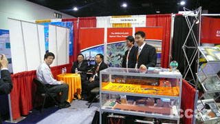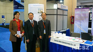 本次展會WTD展出公司新近研發(fā)成功的40/80公里DWDM XFP 10Gbps光模塊產(chǎn)品。據(jù)現(xiàn)場人員介紹,該產(chǎn)品采用DWDM-rated EML激光器和APD探測器,產(chǎn)品規(guī)格符合SONET OC-192、SDH STM 64以及10GBASE標準,兼容10G光纖通道(FC)標準。產(chǎn)品完全遵循XFP MSA version 4.5協(xié)議,功耗小于3.5W,具備熱插拔的光學和電接口,傳輸距離分別為40公里和80公里,同時還滿足RoHS要求。目前該產(chǎn)品已可提供樣品。