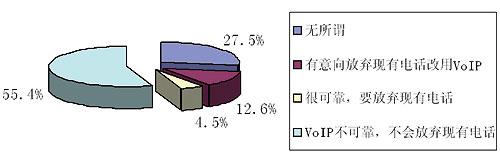最近《華爾街日?qǐng)?bào)》刊載了YankeeGroup公司的調(diào)查報(bào)告,對(duì)美國(guó)人使用VoIP的趨向和目前的一些應(yīng)用狀況進(jìn)行了統(tǒng)計(jì),重點(diǎn)調(diào)查了美國(guó)人是否要放棄傳統(tǒng)的固定電話而改用VoIP,具體數(shù)據(jù)參見圖1。從圖中可見人們對(duì)放棄固定電話而改用VoIP的意向還不是很高,但已使用VoIP的人群卻是個(gè)龐大的群體,使用VoIP的人口比例已達(dá)15.1%,現(xiàn)使用人數(shù)已達(dá)到了4500多萬(wàn)戶,具體見表1。另外,目前美國(guó)VoIP已從暴利行業(yè)轉(zhuǎn)向微利行業(yè),這點(diǎn)可以從Skype公司收入得到證明,詳見表2。