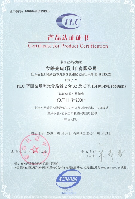 目前PLC和跳線產(chǎn)品測試設(shè)備均來自美國進口,其中PLC一次性測試32通道的設(shè)備共有2臺,價值20多萬美金。“先進的測試設(shè)備是產(chǎn)品品質(zhì)的基本保障。”林總肯定說,“目前光分路器對位車間的對位機,也都是今皓自行開發(fā)的軟件,整臺對位機還特別針對我們的制程來制訂。我們初步了解了國內(nèi)的競爭對手,應(yīng)該說擁有今皓有這樣的自行開發(fā)能力的廠商屈指可數(shù)。”此外,在產(chǎn)品品質(zhì)保證方面,因為公司產(chǎn)品主要出口到歐美,公司擁有自己的RoHS 實驗室,該實驗室更通過中國合格評定國家認可委員會(CNAS)授與<實驗室認可證書>,不僅所有的產(chǎn)品都可以自己掌控 RoHS 的品質(zhì),更可在委員會的監(jiān)督下為落實環(huán)保管制。