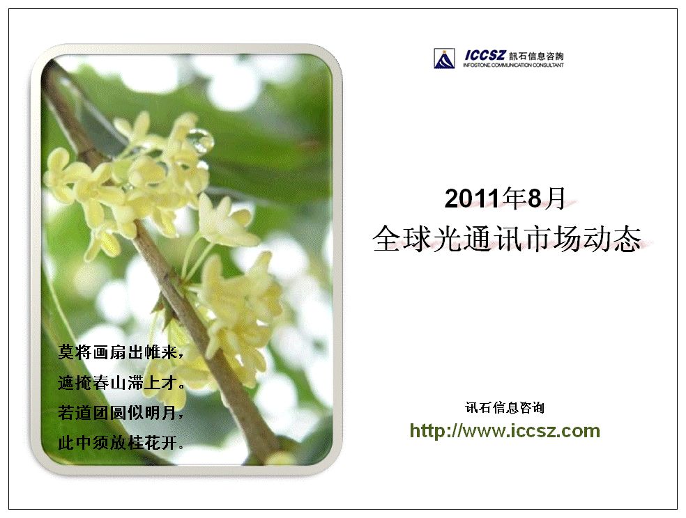 如果需要進一步了解最新的市場動態(tài),更好地把握商機,請下載查閱訊石公司最新推出的月度報告—《2011年8月全球光通訊市場動態(tài)月報》。