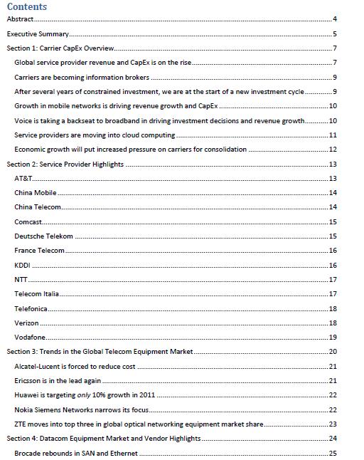 然而,運營商已看到帶寬需求的持續(xù)強勁增長,并越來越多地增加他們的資本支出預算,加大網絡基礎設施的投資來支持這種增長,這就保證了網絡產業(yè)供應鏈的穩(wěn)定的現(xiàn)金流。2011年,盡管日本地震和泰國洪水造成了不小破壞,但