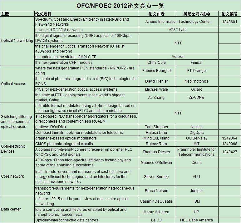論文中,NTT探討"400Gbps和以上速率光傳輸網(wǎng)(OTN)的挑戰(zhàn)";Verizon提供"MPLS-TP的最新信息";Finisar公司的Chris Cole概述了"下一代CFP模塊"。