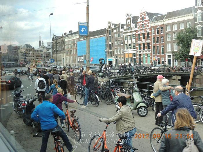 就算是廁所也不放過任何廣告的機會。 荷蘭航空上使用的紙杯,特別標明為廢棄物回收利用。 注重環(huán)保、節(jié)能、實用是這個城市給我們的第一印象。說到環(huán)保不得不說到自行車, 阿姆斯特丹不愧為“自行車王國”,途徑之處,四處可見騎車人的身影和擺放的自行車。自行車模樣也有當地特色,樣子有點像我們的“傳統(tǒng)大28”,復古味十足,稱做“Dutch bicycle”。 自行車實用又環(huán)保,為了推行自行車交通政策,荷蘭政府的市長部長們也常常騎自行車上下班。公務員辦事,70%的外出工作量是利用自行車和公共交通工具來完成的。阿姆斯特丹自行車幾乎人手一輛,絕對是自行車王國。 另外說到自行車,可以看到他們自行車坐墊也是非常之高,這從側面反饋出阿姆斯特丹人身高非常高,據悉荷蘭是世界上平均身高最高的國家,荷蘭居民平均身高為男182.5cm ,女172cm。 |