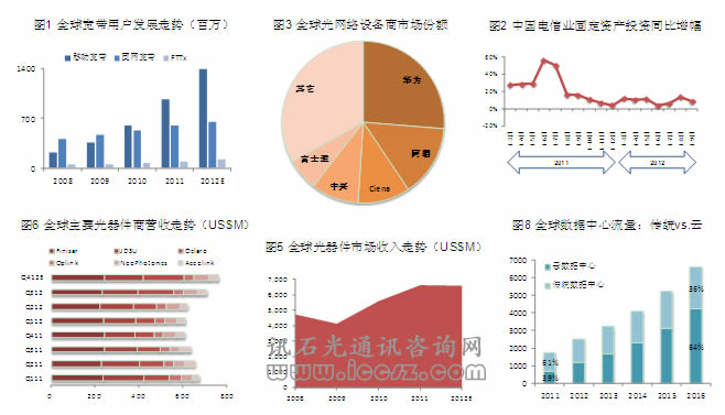 2012年,全球宏觀經(jīng)濟的不確定性仍在影響光通信市場。服務(wù)供應(yīng)商對光網(wǎng)絡(luò)的投資仍然謹慎,所以盡管年初時運營商公布的全年資本開支預(yù)算相比2011年有不小幅度增長,但實際投資卻在放緩。