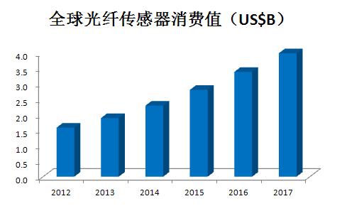 【訊石光通訊咨詢網(wǎng)】來自ElectroniCast的最新報告數(shù)據(jù)顯示,從2012年到2017年間,全球光纖傳感器(包括點分式和分布式)消費值的平均年增幅高達20.3%,其年消費值將從2012年的15.8億美元增長至2017年的39.8億美元。