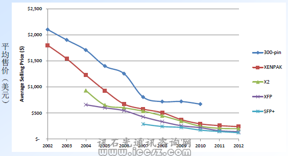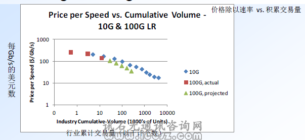 的每Gb/s的價(jià)格下降得要快。降低100G 器件的最佳方法是:增加交易量!