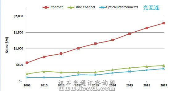對(duì)于大型數(shù)據(jù)中心來(lái)說(shuō),這些鏈接應(yīng)該是100G,相距30m-50m,很多鏈接成本是關(guān)鍵因素這些鏈接將會(huì)到10G。它們現(xiàn)在距離是3-5米。成本是關(guān)鍵問(wèn)題。巨型數(shù)據(jù)中心引領(lǐng)這個(gè)變革。