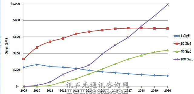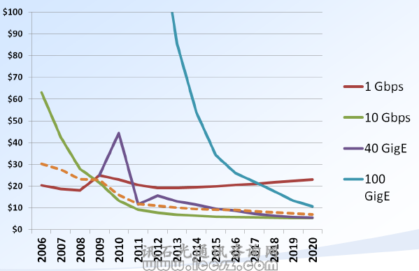 100GigE 與10GigE的發(fā)展趨勢(shì)相同