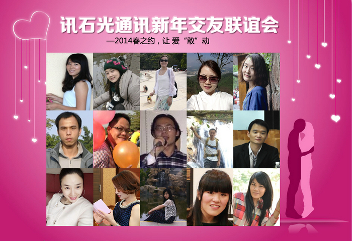 ICCSZ訊(編輯:Debi)陽(yáng)春三月,鮮花盛開,春天的腳步臨近了,單身男女的幸福也就要到來了。在春日的暖陽(yáng)下,讓我們相約3月1日的深圳西麗湖度假村,參加由深圳市億源通光電科技有限公司贊助的“訊石光通訊新年交友聯(lián)誼會(huì)”吧,給自己多一個(gè)機(jī)會(huì),結(jié)識(shí)更多的朋友,大膽地報(bào)名參加吧!