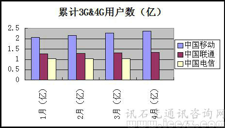 三大運(yùn)營商累計(jì)3G&4G用戶數(shù)