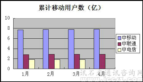 三大運(yùn)營商累計(jì)移動用戶數(shù)