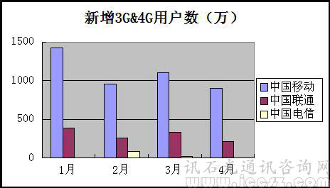 三大運(yùn)營商新增3G&4G用戶數(shù)