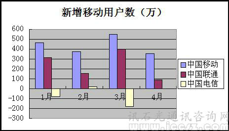 新增移動用戶數(shù)表現(xiàn)最搶眼的當(dāng)屬中國電信——除了4月尚未公布的數(shù)據(jù)外,前三個(gè)月有兩個(gè)月的凈增移動用戶數(shù)為負(fù)!唯一一次凈增為正的2月,中國電信移動用戶數(shù)增長22萬,比起中國移動的375萬、中國聯(lián)通的157萬依然顯得微不足道。