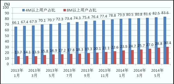 圖3 2013-2014年互聯(lián)網(wǎng)寬帶接入8M以上用戶占比情況