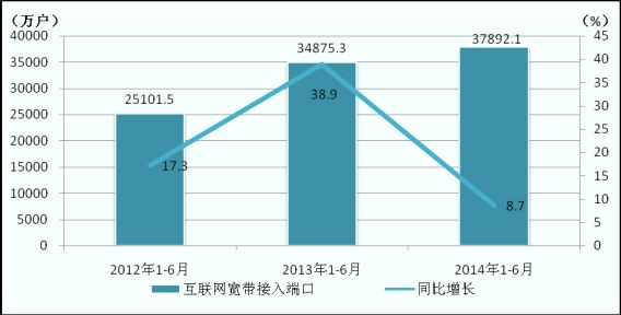 圖10 2012-2014年1-6月互聯(lián)網(wǎng)寬帶接入端口發(fā)展情況