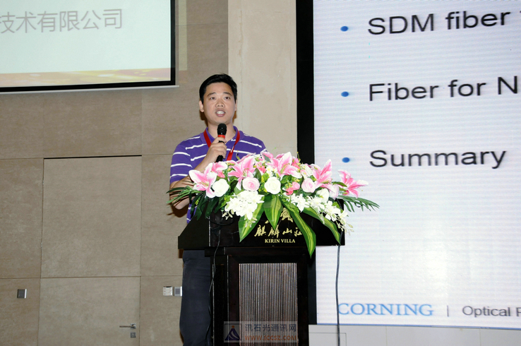康寧光通信光纖市場開發(fā)經(jīng)理陳皓發(fā)表題為《用于大容量光傳輸系統(tǒng)的新型光纖技術(shù)》的演講。