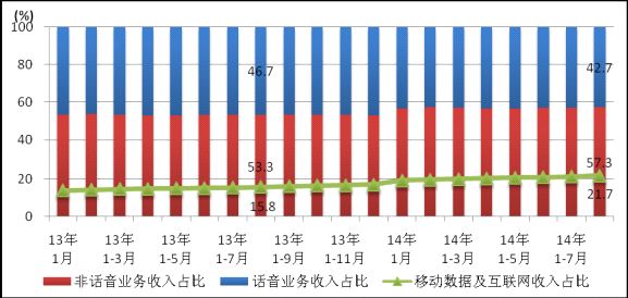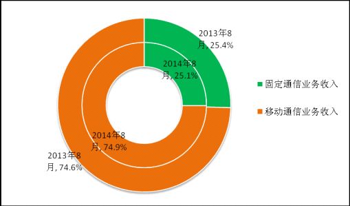圖9 2014年8月電信主營(yíng)業(yè)務(wù)收入構(gòu)成(固定和移動(dòng))