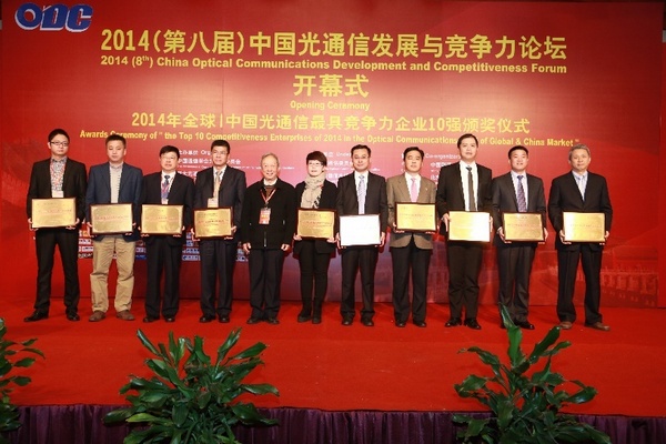 獲得2014(第八屆)中國|全球光通信最具競爭力企業(yè)10強相關企業(yè)如下: