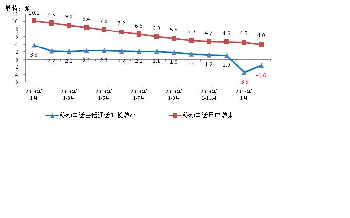 圖5. 2014-2015年2月移動電話通話量和移動電話用戶同比增長比較
