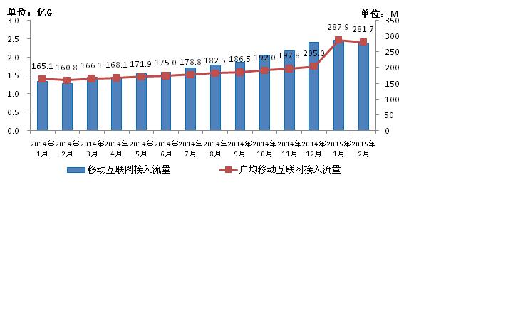 圖7 2014-2015年2月移動互聯(lián)網(wǎng)接入流量和戶均流量比較