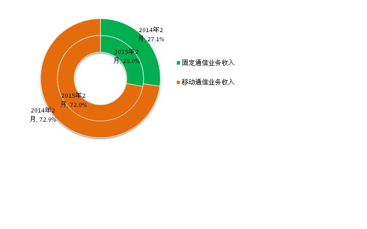 圖8 2015年2月電信業(yè)務(wù)收入結(jié)構(gòu)占比情況(固定和移動)
