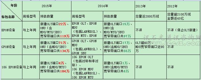 本次中國電信啟動的2015年PON設(shè)備集采,數(shù)量同比去年拉開的差距之異常,也顯示了中國電信在固網(wǎng)鋪設(shè)規(guī)劃的決心。