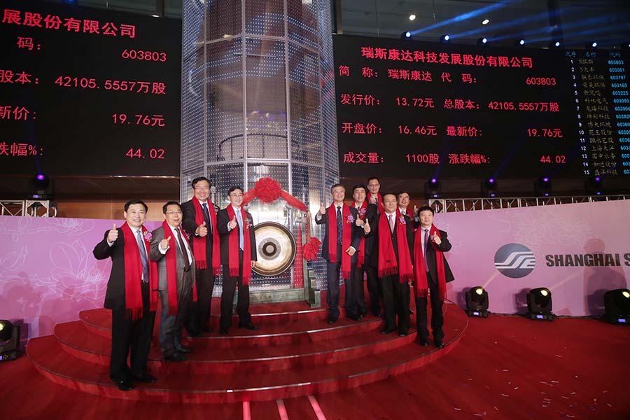 ICCSZ訊(編輯:Joy)瑞斯康達(dá)科技發(fā)展股份有限公司股票于2017年4月20日在上海證券交易所A股上市,股票簡稱“瑞斯康達(dá)”,股票代碼“603803”,首次公開發(fā)行股票數(shù)量5680.00萬股,公開發(fā)行后的總股本42105.5557萬股。發(fā)行價(jià)格:13.72元/股,發(fā)行首日大漲44.02%,收盤價(jià)19.76元。