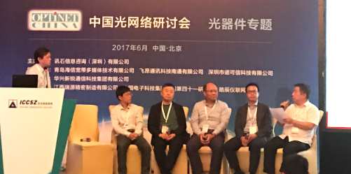 臺(tái)上專家傾情演講,場(chǎng)下觀眾全神貫注,會(huì)議走到最后還有一場(chǎng)以自由開(kāi)放,兼收并蓄為目的的“有源光器件發(fā)展走向”的話題論壇帶領(lǐng)會(huì)議氣氛走向高峰。話題論壇由運(yùn)營(yíng)商、系統(tǒng)設(shè)備商、器件模塊商、芯片商和高校學(xué)者組成,通過(guò)各自不同的角度全方面看待當(dāng)前中國(guó)光通訊器件發(fā)展情況。