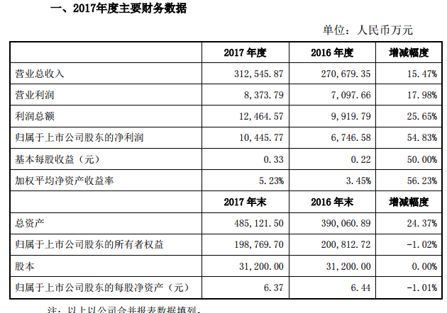 ICCSZ訊 (編輯:Nicole)深圳日海通訊技術(shù)股份有限公司(以下簡(jiǎn)稱:日海通訊)近日發(fā)布《2017年度業(yè)績(jī)快報(bào)》??靾?bào)顯示:2017年度,日海通訊營(yíng)業(yè)收入31.3億元人民幣,上年同期27.1億元,同比增長(zhǎng)15.47%;營(yíng)業(yè)利潤(rùn) 8.4千萬(wàn)元,上年同期7.1千萬(wàn)元,同比增長(zhǎng)17.98%;利潤(rùn)總額 1.25億元,上年同期9.92千萬(wàn)元,同比增長(zhǎng)25.65%;其中歸屬于上市公司股東的凈利潤(rùn)為1.05億元,上年同期6.75千萬(wàn),同比增長(zhǎng)54.83%。日海通訊2017年度股票基本每股收益0.33元,同比增長(zhǎng)50%,2017年末總資產(chǎn) 48.51億元,同比增長(zhǎng) 24.37%。