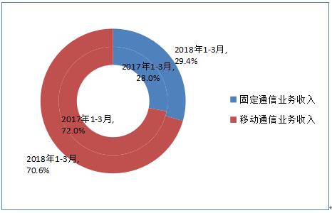 圖3 2018年1-3月電信業(yè)務(wù)收入結(jié)構(gòu)占比情況(固定和移動(dòng))