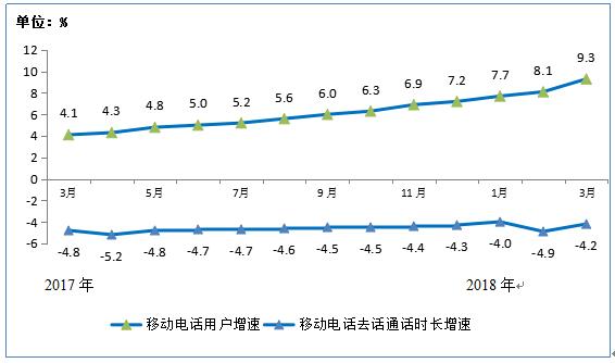 圖7 2018年1-3月移動(dòng)電話用戶和通話量增幅比較